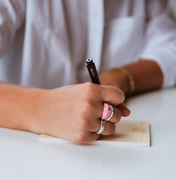 COME ON BARBIE LET'S GO PARTY AMIRITE??? I feel like Miss Barb would defo hit up a party with this lil statement ring. It's fun, it's pink, it's sparkley, it's fabbi. What more could a Barbie girl ask for?? It has an open band, but fits about a size 6.5/7 best.