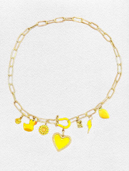 A yellow themed charmie for the shiny happy people!! Measures approx 18” long with a U-shackle closure. One of a kind and handmade by moi here in Los Angeles.
